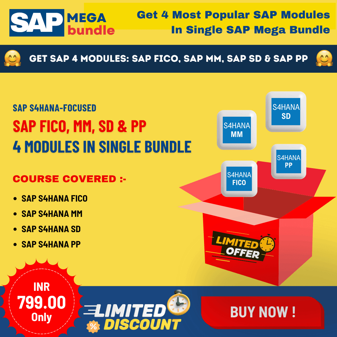 📚 4 In-Demand SAP Modules in One Bundle – Master 4 powerful SAP modules—FICO, MM, SD, and PP—to gain end-to-end expertise in finance, procurement, sales, and production, making you a highly valued SAP professional.