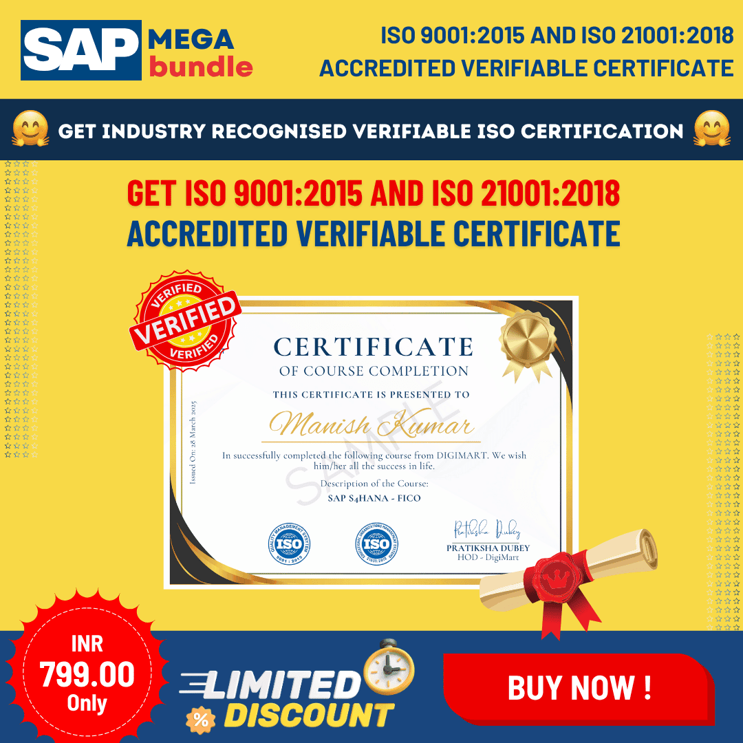 Master 4 Powerful SAP S4HANA Modules (FICO, MM, SD & PP) in One SAP Mega Bundle with Expert-Led Video Lectures, e-Content, Projects, Exam Dumps, Real Interview QnA’s Series, Resume Samples and ISO Accredited Course Completion Certificate. Get 1 Month SAP S4HANA Server Access FREE.
